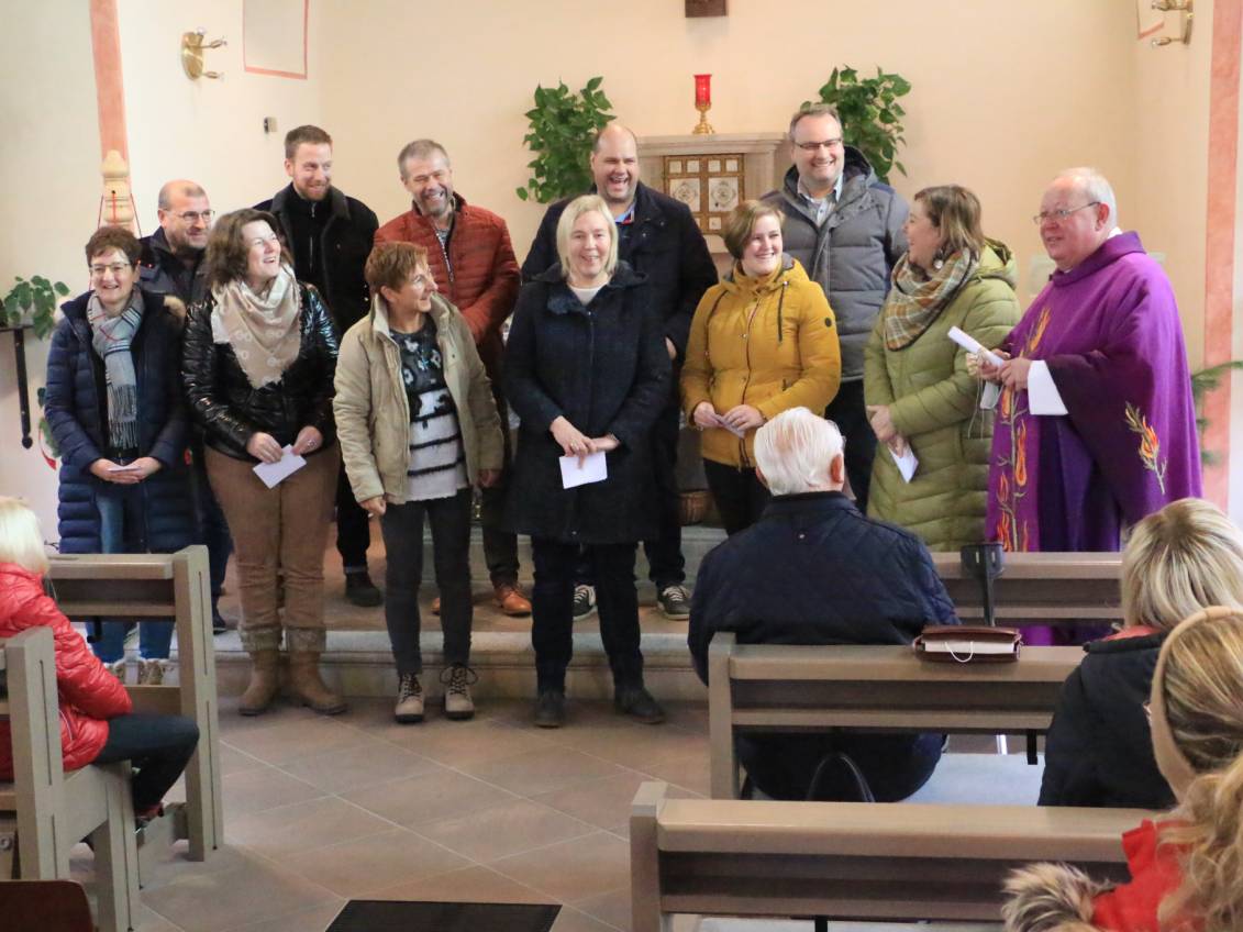 Einige engagierte Mitglieder/innen von Verwaltungs- und Pfarrgemeinderat, Küster und Rendatenamt sangen Herrn Pfarrer eine selbst gedichtetes Lied: "Wir sagen Dankeschön, für 14 Jahre mit Günter!" Begleitet wurden die Sängerinnen und Sänger von der SongGruppe Lehnerz.