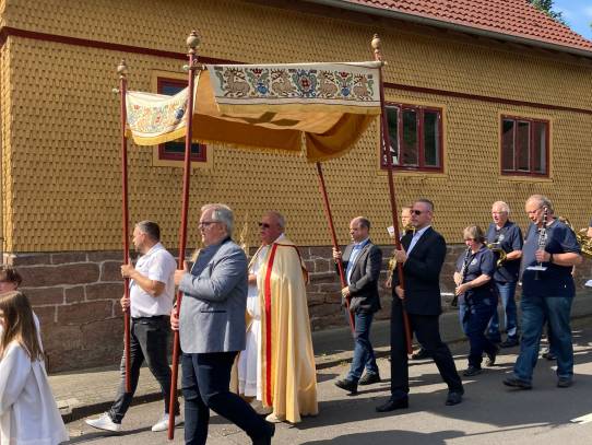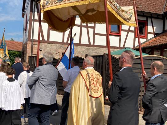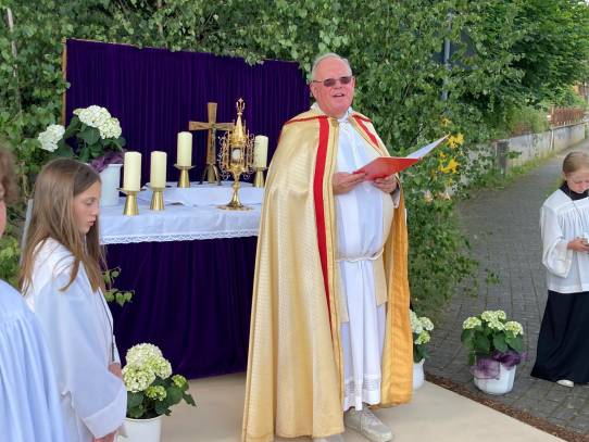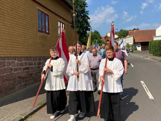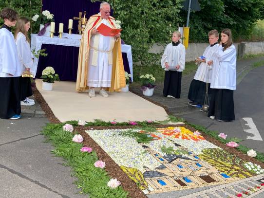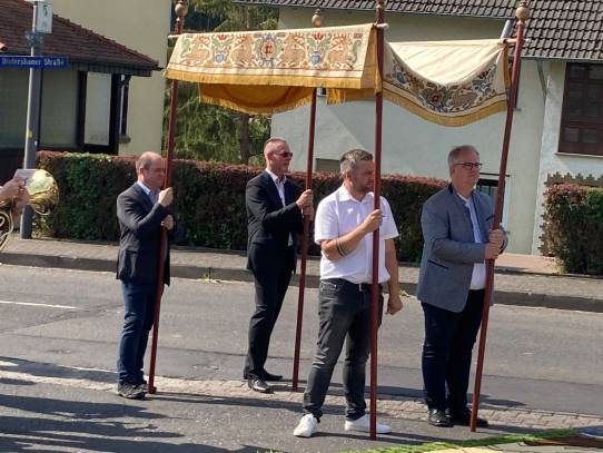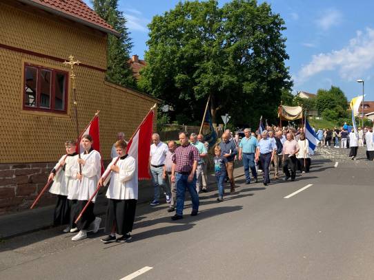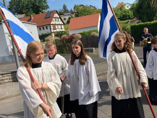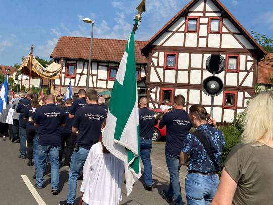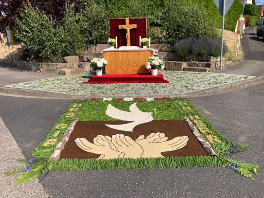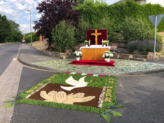 Nach 4 Jahren fand in Dietershan wieder eine Fronleichnamsprozession statt. Bei schönsten Wetter konnten alle 4 Altare wieder angelaufen und bewundert werden. Bei fast allen Altaren war eine Friedenstaube abgebildet, was sich alle in diesen Zeiten ersehnen -Frieden-. Allen Altarbauern möchten wir danke sagen, für ihren Ideenreichtum und die tolle Gestaltung der Altare. Es war wieder schön mit so vielen Gemeindemitgliedern zusammen diesen Brauch begehen zu können. Wir hoffen das diese Tradition noch lange in dieser Form fortgeführt wird. Auch vielen Dank an die Musikkapelle Dietershan sowie an Pfr. Etzel für die Ausgestaltung der Prozession.
