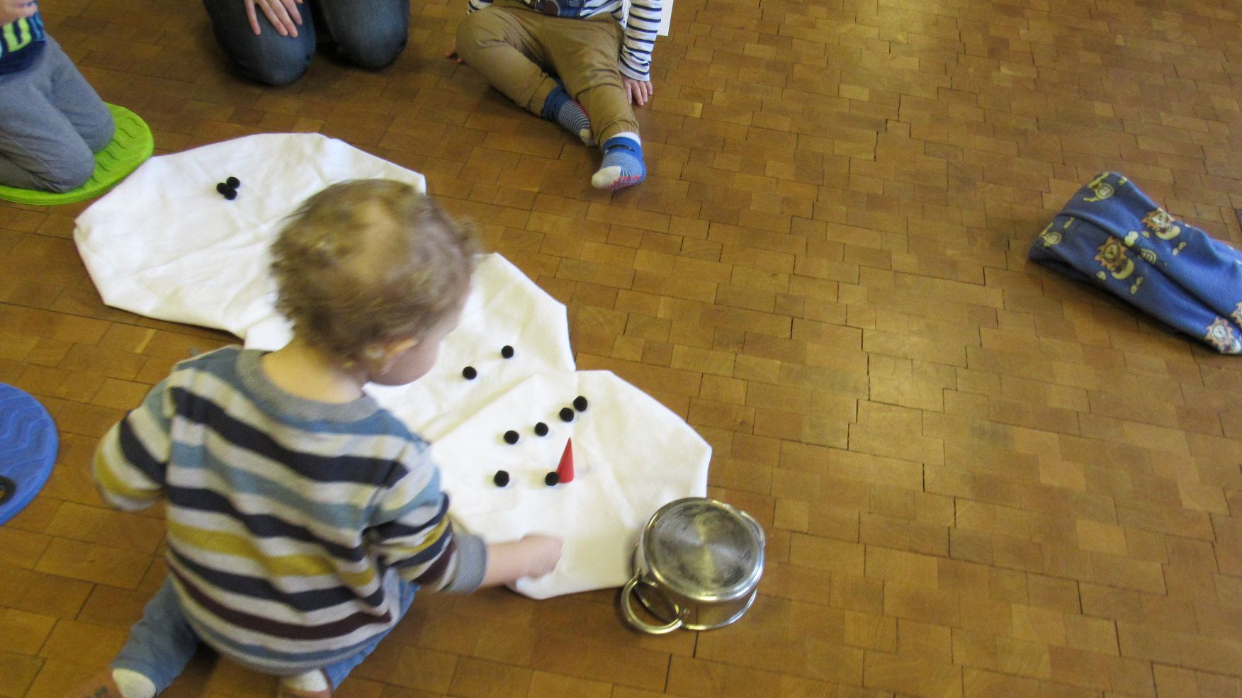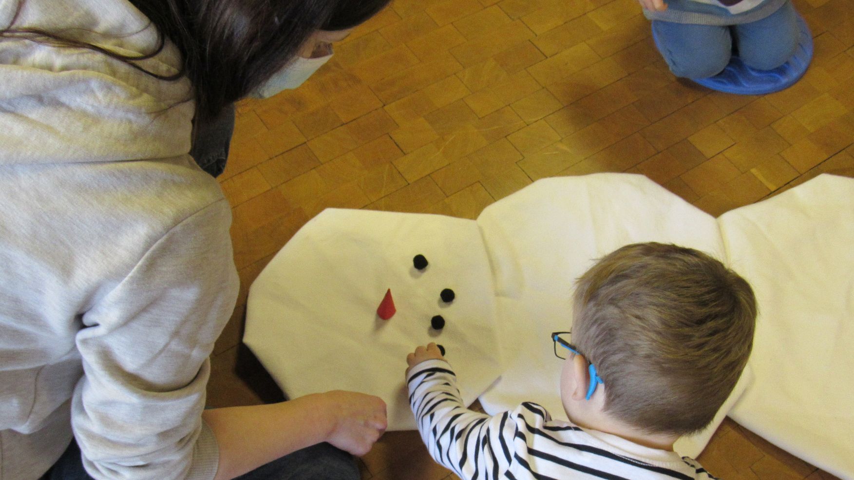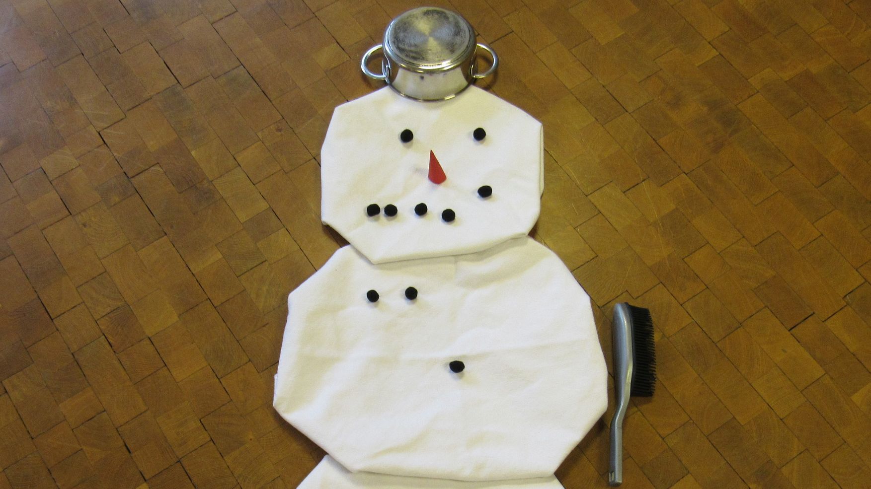 Um die Merkfähigkeit zu fördern, haben wir einen Schneemann, der in einem Lied beschrieben wird, nachgebaut.