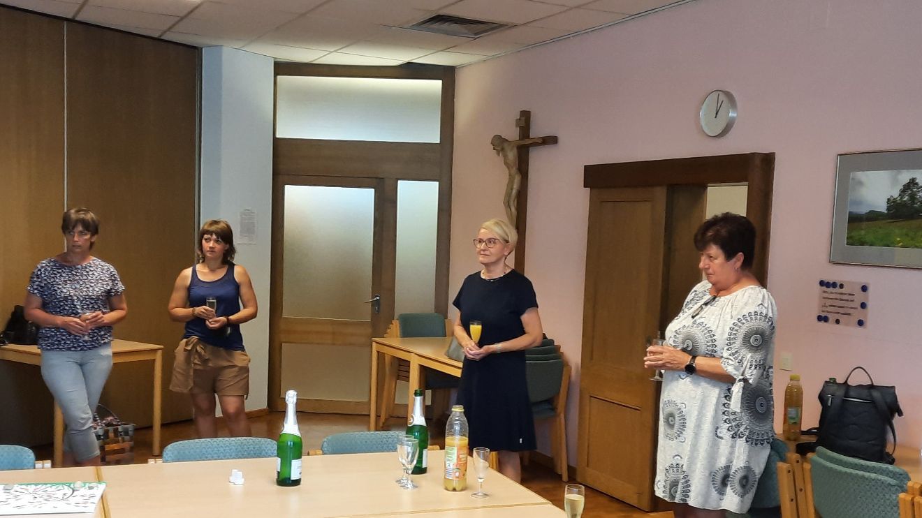 Bei einem festlichen Zusammentreffen verabschiedeten und bedankten sich Mitglieder des Verwaltungsrates der Pfarrei St. Elisabeth, des Pfarrgemeinderates sowie Pfarrer Msgr. Dr. Günter Etzel, bei der Kitaleitung Frau Gorsemann und dem ganzen Team für die jahrelange und vertrauensvolle Zusammenarbeit. Mit dem Beginn des Neubaus wechselt nun auch die Trägerschaft von der Pfarrei - hin zur St. Vinzenz gGmbH, Fulda.