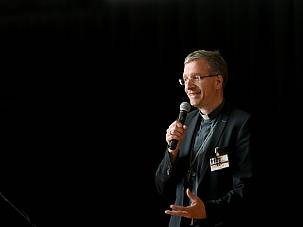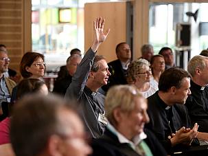 Dazu Bischof Dr. Michael Gerber bei seiner Begrüßung: „Das Evangelium in eine postmoderne, multioptionale Gesellschaft zu buchstabieren, die es so noch nie gab - Ich habe große Lust, das gemeinsam mit Ihnen zu gestalten. Denn ich erlebe in unserem Bistum Menschen, die ganz wach am Heute dran sind und zugleich sehr geistlich unterwegs sind.“