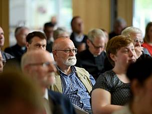 „Wir sind so sehr mit unseren inneren Bildern von Glaube und Kirche aus der Vergangenheit beschäftigt, dass wir blind sind, für die Chancen die uns heute gegeben werden.“, sagte Pfr. Hennecke und sprach weiter: „Neues kann erst werden, wenn das Alte betrauert ist. Gott geht mit seinem Volk und seiner Welt durch diese Zeit. Aber wir können nichts konservieren – das tun wir aber die ganze Zeit. Mehr machen ist nicht gleich mehr Kirche. Die Begegnung mit Christus ist zentral. Denn die Welt ist gottvoll. Was fehlt ist, dass wir mit Jesus zusammen diesen Blick einnehmen. Und dann gibt es viele unglaubliche Entdeckungen einer Gemeinschaft, die aus dem Evangelium an ganz überraschenden Orten entsteht“, so der Generalvikariatsrat aus Hildesheim.