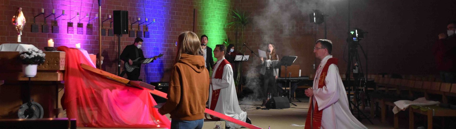 Hosanna Live – unter diesem Titel feierten am Palmsonntag Jugendliche und junge Erwachsene ihren Glauben. Da es auch in diesem Jahr nicht möglich war, mit einer großen Gruppe gemeinsam zu feiern, hatte sich das Organisationsteam überlegt, eine hybride Veranstaltung durchzuführen. Eine Gruppe von rund 70 Personen war in der Kirche St. Lukas am Aschenberg in Fulda zu Gast. Das Programm, das dort stattfand, wurde über den YouTube Kanal des Bistums gestreamt, so dass im gesamten Bistumsgebiet rund 400 weitere Teilnehmende über ihre mobilen Endgeräte dabei sein konnten.