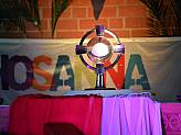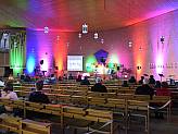 Der sich anschließende Gebetsabend wurde live gestreamt. Zu Beginn begrüßte Jugendpfarrer Alexander Best die Jugendlichen und jungen Erwachsenen „Ich freue mich, dass ihr dabei seid bei Hosanna 2021 hier aus St. Lukas am Aschenberg.“ In seiner Begrüßung erwähnte er besonders die Firmlinge aus Niederdorfelden und eine Gruppe aus Gelnhausen Höchst, die sich in ihren Kirchen gemeinsam getroffen hatten, um mitzufeiern. Musikalisch begleitet von der KJF-Lobpreisband tauchte die Gemeinschaft in St. Lukas und an den mobilen Endgeräten in die Begegnung mit Gott ein.