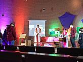 Ein kleines Redaktionsteam hatte im Vorfeld ein abwechslungsreiches Vorprogramm zusammengestellt. Im „antons - meat and eat“ hatte sich das Team mit viel Technik auf seine Gäste vorbereitet und verschiedene Beiträge aufgenommen unter anderem die Katechese von Bischof Michael Gerber zum Motto der Veranstaltung „Steh auf!“ und zwei Zeugnisse junger Menschen darüber, wie ihr Glaube ihr Leben prägt. Dieses Vorprogramm konnten die Teilnehmenden zu Hause am Bildschirm und in St. Lukas auf der Leinwand verfolgen. Im YouTube-Chat gab es die Möglichkeit, Fragen einzusenden, die der Bischof anschließend beantwortete.