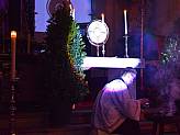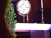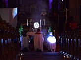 In einem zweiten Teil des Gebetsabends wurde ein weiteres Zeichen für die Gegenwart Jesu zum Altar gebracht. In Gestalt der Heiligen Kommunion wurde das Allerheiligste zum Zentrum der versammelten Gemeinde. Die Teilnehmenden waren eingeladen, in der Gegenwart Jesu da zu sein und sich anschauen zu lassen. Wer wollte, konnte eine Kerze anzünden und vor das Allerheiligste stellen oder das, was ihm auf dem Herzen lag auf einen Zettel schreiben und in eine Gebetsbox werfen. In den Seitengängen des Doms standen Mitarbeiter des Bistums bereit, um den Jugendlichen ein Gespräch zu ihren Anliegen, ihren Fragen und ihrem Glauben anzubieten. Wer wollte, konnte auch zu einem Priester gehen und das Sakrament der Versöhnung empfangen oder sich segnen lassen.
