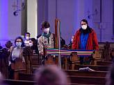 Diese Zeit des Gebets wurde von der Projektband, die sich eigens für diese Vigil zusammengefunden hatte, untermalt. Da im Kirchenraum kein Gesang der Teilnehmenden möglich ist, war es umso schöner, wie die Stimmen der drei Sängerinnen und Sänger dem Gebet und Glauben Ausdruck verliehen und für einige Gänsehautmomente sorgten.