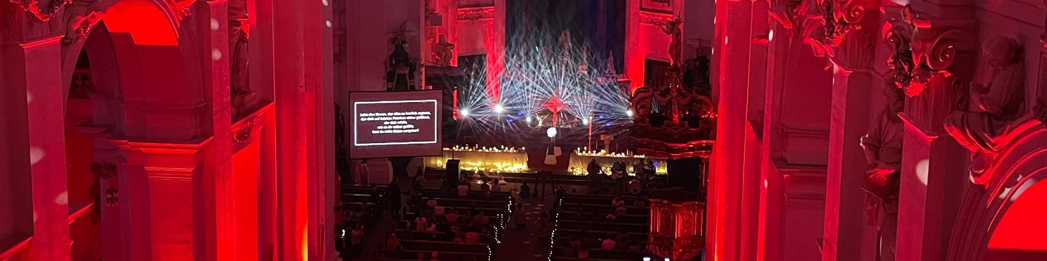 Am Samstagabend feierten rund 250 junge Christen im Dom einen Abend der Barmherzigkeit. Mit einer aufwendigen Lichtinstallation und einer professionellen Musik der Band LOBEN unter der Leitung von Daniel Harter wurde im Fuldaer Dom eine einzigartige und besondere Atmosphäre geschaffen, welche alle Teilnehmenden in einen stimmungsvollen Gebetsabend mitnahm.