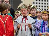 Das Bistum Fulda wurde von Kindern aus der Pfarrgemeinde St. Anna in Somborn, Freigericht, vertreten. Begleitet von Rebecka Schneider und Pfarrer Johannes Wende hatte sich die Gruppe bereits um 6:30 Uhr getroffen, um sich auf den Weg nach Wiesbaden zu machen. Vor dem Empfang wurde noch einmal kurz der Durchlauf geprobt, dann ging es los.