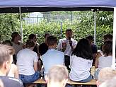 Der Nachmittag startet mit einem vielfältigen Workshop-Angebot: Die jungen Festivalteilnehmenden haben die Möglichkeit kreative, sportliche, politische und religiöse Angebote zu nutzen. Im Anschluss feiert Diözesanjugendseelsorger Pater André Kulla mit den jungen Menschen einen Gottesdienst, der von der Band „Glückwärts“ gefühlvoll begleitet wird. „Es ist schon ein bisschen emotional heute mit so vielen jungen, engagierten Menschen gemeinsam Open-Air Gottesdienst zu feiern“, so Kulla.