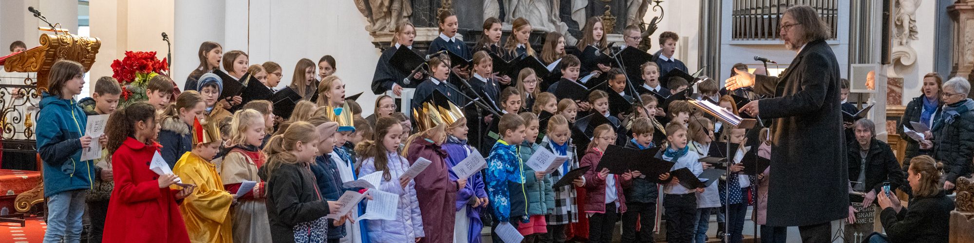 Weihbischof und Domdechant Prof. Dr. Karlheinz Diez empfing die bunt gekleideten Sternsingerinnen und Sternsinger mit Freude im Fuldaer Dom und betonte die Bedeutung ihrer Solidaritätsaktion. „Ihr tut hier etwas sehr Wichtiges zur Freude der Menschen und zur Ehre Gottes“, lobte der Weihbischof. Die Sternsingeraktion unterstützt als weltweit größte Solidaritätsaktion von Kindern jedes Jahr notleidende Kinder weltweit und verbreitet gleichzeitig den Segen in zahlreichen Häusern und Wohnungen.
