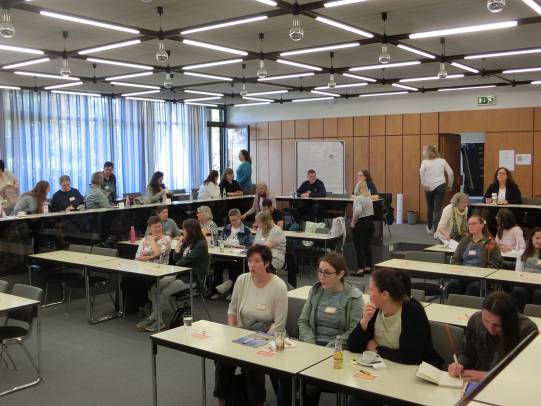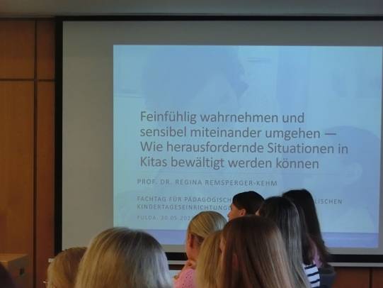 Die Teilnehmenden nutzen die Veranstaltung für einen intensiven fachlichen Austausch zum Umgang mit herausfordernden Verhaltensweisen von Kindern. Verschiedene Impulse boten neue Sichtweisen für die Gestaltung des pädagogischen Alltags in der Kita. Nach einleitenden Worten der Dezernatsleiterin Elvira Diel folgte als zentraler Programmpunkt der Fachvortrag zur responsiven Sensibilität von Frau Prof. Dr. Regina Remsperger-Kehm. Mit ihrer hohen fachlichen Expertise und anschaulichen Beispielen stellte sie den Ansatz vor, der auf achtsame Wahrnehmung, feinfühlige Reaktionen und Beziehungsgestaltung in der pädagogischen Arbeit fokussiert. Der Vortrag lieferte wichtige theoretische Grundlagen und praktische Anregungen, die bei den Teilnehmenden auf großes Interesse stießen.
