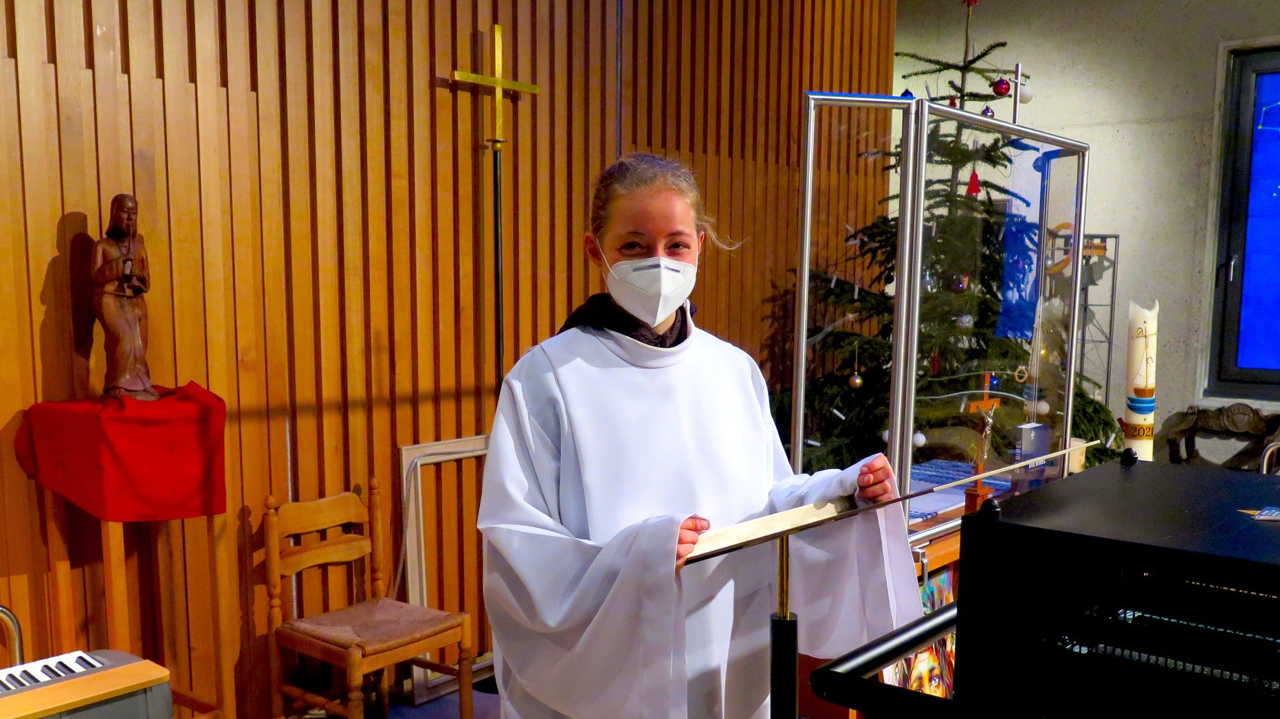 während sie am letzten Praktikumstag im Kirchenraum nochmal den Sternenhimmel anschaut:
