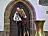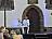 zur Bühne für das Mysterienspiel „Jedermann“. Die Seitenfront mit der Eingangstür