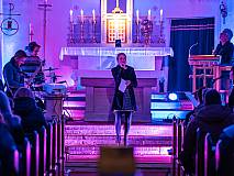 Der modern gestaltete Gottesdienst stand unter der Überschrift "König meines Herzens". Die einfühlsamen, aber auch sehr rhythmischen Worship-Songs der Band stellten Jesus Christus als den König in das Zentrum des Lobpreises und der Anbetung. Bereichert wurde der Abend durch einen sehr persönlichen Impuls von Josef Richter aus Großentaft, Vorsitzender Richter am Landgericht Fulda. Er sprach eindrucksvoll vom rechten Richten und von der heilsamen Wirkung der Vergebung. Höhepunkt des Abends bildete schließlich die eucharistische Anbetung, bei der die Lobpreisbesucher zum Altar treten konnten, um Weihrauch für ihre ganz persönlichen Bitten aufzulegen. Zusammen mit Dechant Markus Blümel spendete Gastgeber und Ortspfarrer Winfried Vogel zum Ende den Einzelsegen. Familie Falkenhahn aus Arzell sorgte im Anschluss an den Gottesdienst für einen gemütlichen und liebevoll eingerichteten Glühwein-Empfang direkt gegenüber der Kirche.