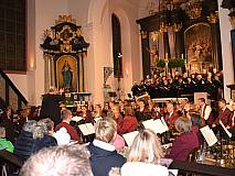 Eine besondere Herausforderung für alle Aktiven war „Laudate Dominum“ von Robert Jones, wobei der Orchesterverein, der Gesangverein und Timm Henkel an der Orgel gemeinsam musizierten.
