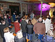 Ein Hauch von Frühling im November empfing die Besucher des Gottesdienstes am Samstag in „Scheppe Schern“ in Großentaft. Die Kolpingsfamilie hatte unter dem Motto „Aufbruch – Komm und Wachse“ zur Heiligen Messe in die alte Fachwerkscheune von Stephanie Erben und Tino Eisenhardt eingeladen.