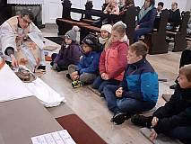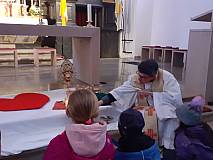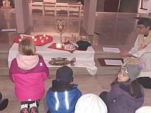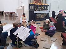 Das Team des Kindermitmachgottesdienstes lud zusammen mit Pfr. Blümel zum Tag des Ewigen Gebetes in die Pfarrkirche St. Georg ein. Dem Allerheiligsten ganz nah erklärte Pfr. Blümel anschaulich und kindgerecht dessen Bedeutung. Alle Kinder lauschten gespannt und aufmerksam. Gemeinsam wurde gesungen und gebetet und jedes Kind durfte dem Allerheiligsten ganz nahe sein. Mit dem Segen endete die Kinderbetstunde. Alle Kinder bekamen noch ein kleines Geschenk mit nach Hause, angelehnt an die Katechese.