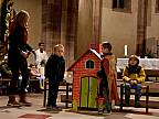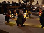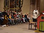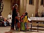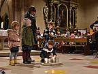 Mit ihren unterschiedlichen, schönen, bunten Laternen beleuchteten die Kinder den Umzug. Die Martinslieder, die auf dem Weg gesungen wurden, wurden von Rainer Kalb auf dem Akkordeon begleitet. Im anschließenden Wortgottesdienst mit Pfarrer Markus Blümel stellten die Kindergartenkinder die Geschichte des Heiligen Martin in einem beeindruckenden Szenenspiel vor. Zwischen den einzelnen Szenen wurde das Lied: „Ein armer Mann, ein armer Mann“ gesungen, begleitet von Erzieherinnen auf der Gitarre, wie auch die übrigen Lieder. Nach dem Lichtertanz mit meditativer Musik, den Fürbitten, die von Kindergartenkinder vorgetragen wurden, dem Vater unser, Gegrüßet seist du Maria und dem Segen, erklang aus vollen Kehlen das traditionelle Sankt Martinslied: „Sankt Martin ritt durch Schnee und Wind“.