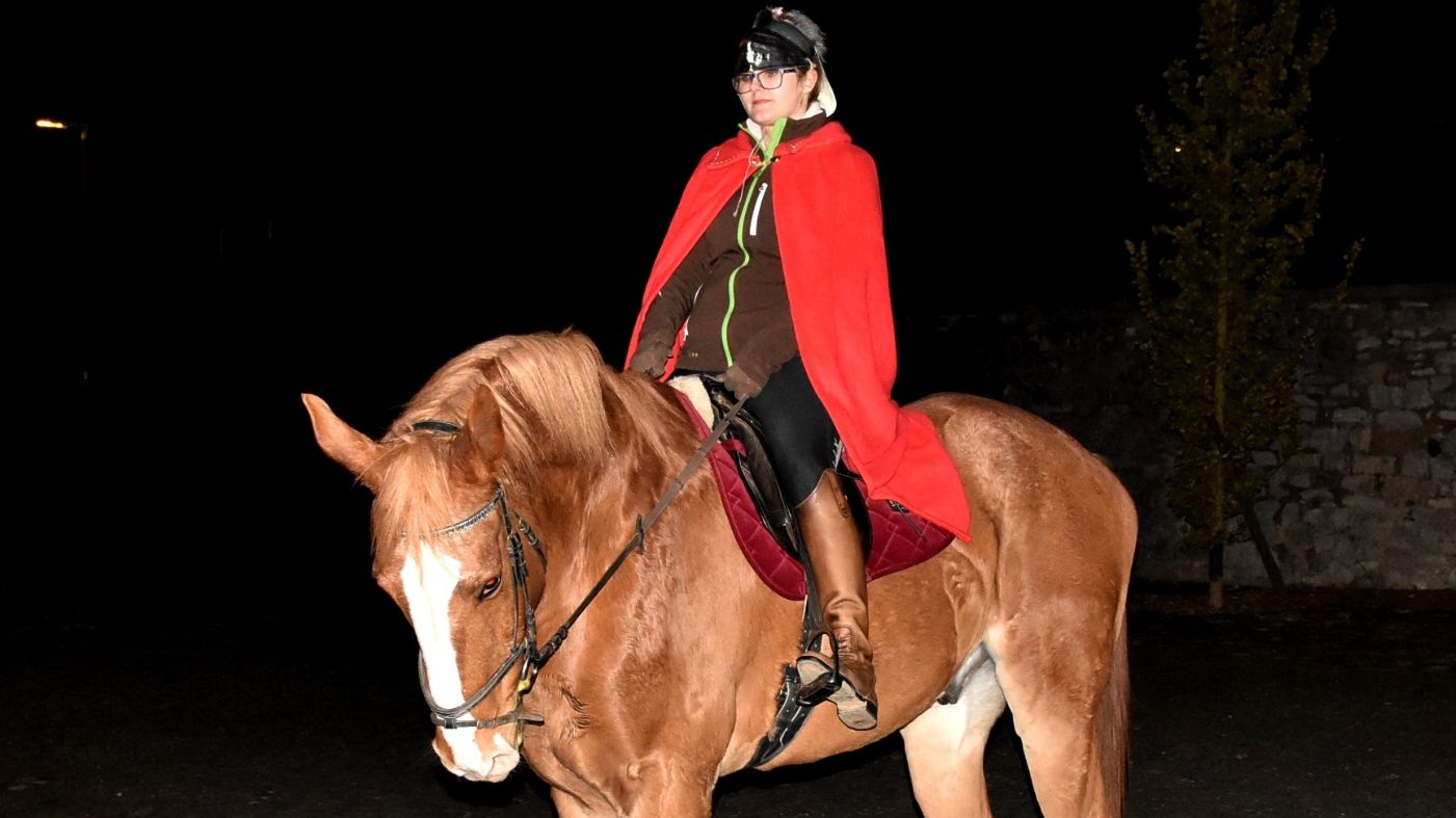 Sankt Martin hoch zu Ross, dargestellt von Rebecca Hohmann, ritt der äußerst großen Schar von Kindern mit ihren Eltern und Großeltern beim Martinsumzug von der Katholischen Kindertagesstätte St. Johannes d. Täufer zur Stiftskirche voran.