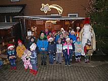 Viele Kinderaugen strahlten als der Nikolaus vor ihnen stand. Mit Liedern und kleinen Gedichten begrüßten die Kinder den heiligen Bischof an der Krippe. Im Gepäck hatte er für jedes Kind ein kleines Geschenk. Die Kolpingsfamilie Großentaft hatte anlässlich des Kolpinggedenktages zu einer Wanderung auf den Spuren des heiligen Nikolaus eingeladen. Kathrin Veltum und Jutta Jost hatten die spannende Spurensuche quer durch den Ort für die Kinder vorbereitet und begleitet.