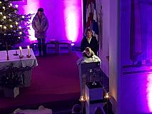 Als Sterne haben sich dann die Kinder in Begleitung mit weihnachtlicher Musik über die Geburt von Jesus unterhalten.