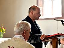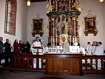 Zu Beginn des Gottesdienstes hatte Mitzelebrant Dechant Markus Blümel Gerhard Stanke willkommen geheißen und ihm am Schluss eine Präsent überreicht. Im Auftrag der Pfarrei Rasdorf dankte Winfried Möller dem ehemaligen Fuldaer Generalvikar für seine mehr als fünfzehnjährige Bereitschaft der Eröffnungsfeier auf dem Gehilfersberg vorzustehen, was mit viel Beifall von den Gläubigen quittiert wurde. Ebenso den Küsterehepaaren Schmitt und Bock für die Herrichtung der Wallfahrtskirche und Betreuung der zahlreichen Gottesdienste. Musikalisch hatte Michael Heller, Buttlar den Gemeindegesang an der Orgel begleitet.
