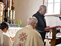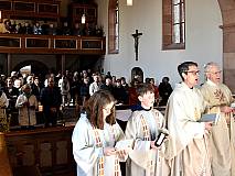 Traditionell wurde am Ostermontag das Wallfahrtsjahr 2023 in der Wallfahrtskirche zu den Heiligen 14 Nothelfern auf dem Gehilfersberg bei Rasdorf eröffnet. Die Menschen aus dem Hünfelder und Fuldaer Land sowie aus dem Geisaer Amt und Raum Hersfeld waren so zahlreich gekommen, dass einige die Eucharistiefeier über die Außenlautsprecher mitfeiern mussten. Im Mittelpunkt stand das Evangelium von der Begegnung der Emmaus-Jünger mit dem auferstandenen Christus. Es freue ihn sehr, endlich wieder die Gläubigen, nach den Einschränkungen durch die Pandemie, so zahlreich begrüßen zu dürfen, so Hauptzelebrant und Festprediger Prof. Dr. Gerhard Stanke, Fulda. Die Emmaus-Jünger hätten nach der Kreuzigung Jesu alle Hoffnung aufgegeben und seien aus Jerusalem geflüchtet. Jesus sei den Emmaus-Jüngern fremd geworden. Doch am Brechen des Brotes hätten sie ihn erkannt und ihnen seien die Augen aufgegangen. Auch wir Menschen seien auf dem Weg. Und wir würden auch die Erfahrung machen, das Ziel unseres Lebens aus den Augen zu verlieren. Als Menschen erführen wir oft unsere Grenzen. Wenn etwas begrenzt sei, gäbe es Konkurrenzen und das Gefühl, zu kurz zu kommen. Jeder Mensch sei einzigartig und so von Gott gewollt. Die Botschaft der Auferstehung zeige, man komme nicht zu kurz. Sie befreie nicht alles erreichen zu müssen. In guten Beziehungen zu leben, entspreche dem Wunsch Gottes. Die Osterbotschaft, die wichtigste Botschaft aller Menschen aller Zeiten, zeige, dass der Tod nicht das Ende sei, sondern Durchgang zu einem neuen Leben. Jesus, der die Arme am Kreuz ausgebreitet habe, sei das deutliche Zeichen des Willen Gottes. Das glauben zu können, wünschte Gerhard Stanke den Zuhörerinnen und Zuhörern.