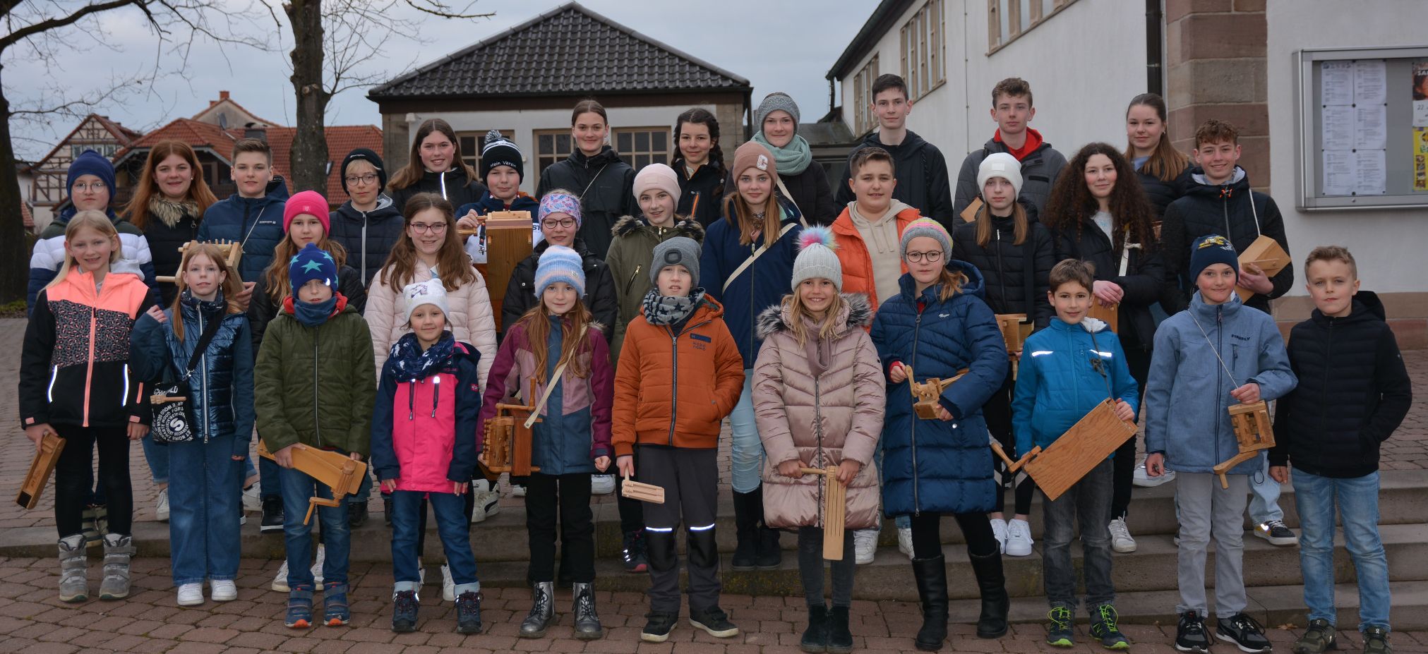 34 Messdiener und Kommunionkinder der Pfarrei St. Matthäus in Steinbach haben sich an Karfreitag und Karsamstag zum Klappern durch die Straßen von Steinbach auf den Weg gemacht. Trotz zum Teil regnerischen Wetters zogen sie an den zwei Tagen durch den Ort. Die Botschaft: die Gläubigen zum Gebet und an die Gottesdienste erinnern. Denn der Überlieferung zufolge schweigen von Gründonnerstag nach dem Gloria der Messe vom letzten Abendmahl den gesamten Karfreitag und Karsamstag über bis zum Gloria in der Osternacht die Glocken, da sie „nach Rom geflogen“ seien. Für den tollen Einsatz der Klapperjungs und Klappermädchen dankt die Pfarrei St. Matthäus von Herzen.