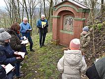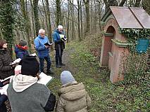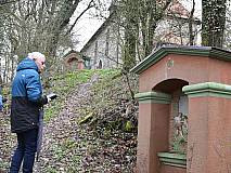 Traditionell wird der Kreuzweg am Gehilfersberg am Palmsonntagnachmittag gebetet. Die Stationen 1-11 sind rund um den Berggipfel angeordnet und tangieren den Friedhofswald Gehilfersberg. Die Stationen 12-14 stehen um die Wallfahrtskirche. Auf Grund des starken Nordwindes, der die Temperatur fast auf Null Grad sinken ließ, war die Teilnahme nur mäßig.