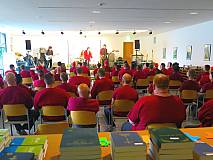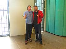 Mit fetten Drum Solos, kreativen Gitarrenriffs und einer aufgeweckten Stimmung brachten die amerikanischen Vollblutmusiker am Ende die Gefangenen dazu in einem vielstimmigen ‚Chor‘ mitzusingen. Selbstverständlich wurde nach einer guten Stunde amerikanischen Rock ´n´ Rolls, eine mehrfache Zugabe lautstark mit viel Geklatsche gefordert. „Thank You! Ich möchte Euch wieder draußen sehen, in aller Freiheit. God bless you all!“ sagte der Sänger zum Schluss. Wonach Heinrich Möller und Hans-Jürgen Klüh von den Gideons die Konzertbesucher mit Bibeln in den unterschiedlichsten Sprachen als Anregung beschenkten, um der beflügelnden Verbindung zwischen Musik und dem Geist Gottes nochmal nachzuspüren.