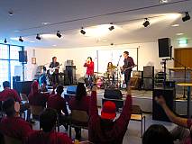 15.05.2023 Am Montagabend gab die amerikanische Band „Imperial Crowns“ aus Los Angeles, Kalifornien ein herausragendes Konzert für die Gefangenen im Mehrzweckraum des Hünfelder Gefängnisses. „Die Könige des Blues-Rock“, eingeladen von den Gefängnisseelsorgern, begeisterte das inhaftierte Publikum und krönte den Abend mit ihrer ganz eigenen Grundrhythmik und ihrem ‚Funky Blues-Stil.‘ Und zwar mit einem Ziel: die Herzen der Menschen, die in Gefangenschaft leben und arbeiten, zu erreichen. Einer der vielen Gründe warum die Band aus den USA diese Woche sowohl auf der JVA-Bühne in Hünfeld als auch in Fulda auftritt.