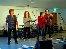 Gefangene aus den unterschiedlichen Hafthäusern, deren Anmeldungen von Diplom-Sportwissenschaftler Alexander Gräber koordiniert worden waren, nahmen an der Veranstaltung teil und sorgten für ein sehr lebendiges Ambiente und einen unvergesslichen Abend im Andachtsraum. Am Anfang des Abends begrüßte Gefängnisseelsorger Diakon Dr. Meins Coetsier mit E-Gitarre sowohl die Band als auch die Strafgefangenen und die ehrenamtlichen Gäste. Er bedankte sich besonders bei der Justiz und den Bediensteten für ihren Einsatz sowie bei Claudia Heim und Rudi Köhl für die finanzielle Unterstützung des Fördervereins der JVA Hünfeld. Peter Gebhard vom Vorstand des Vereins „Förderung der Bewährungshilfe in Hessen“ sprach zum Ende des Konzerts bewegende Schlussworte und bedankte sich ausdrücklich beim tollen Hünfelder Publikum, bei dem die Freude und befreiende Atmosphäre für einen Abend, in ihrem harten Gefängnisalltag, zu spüren war.