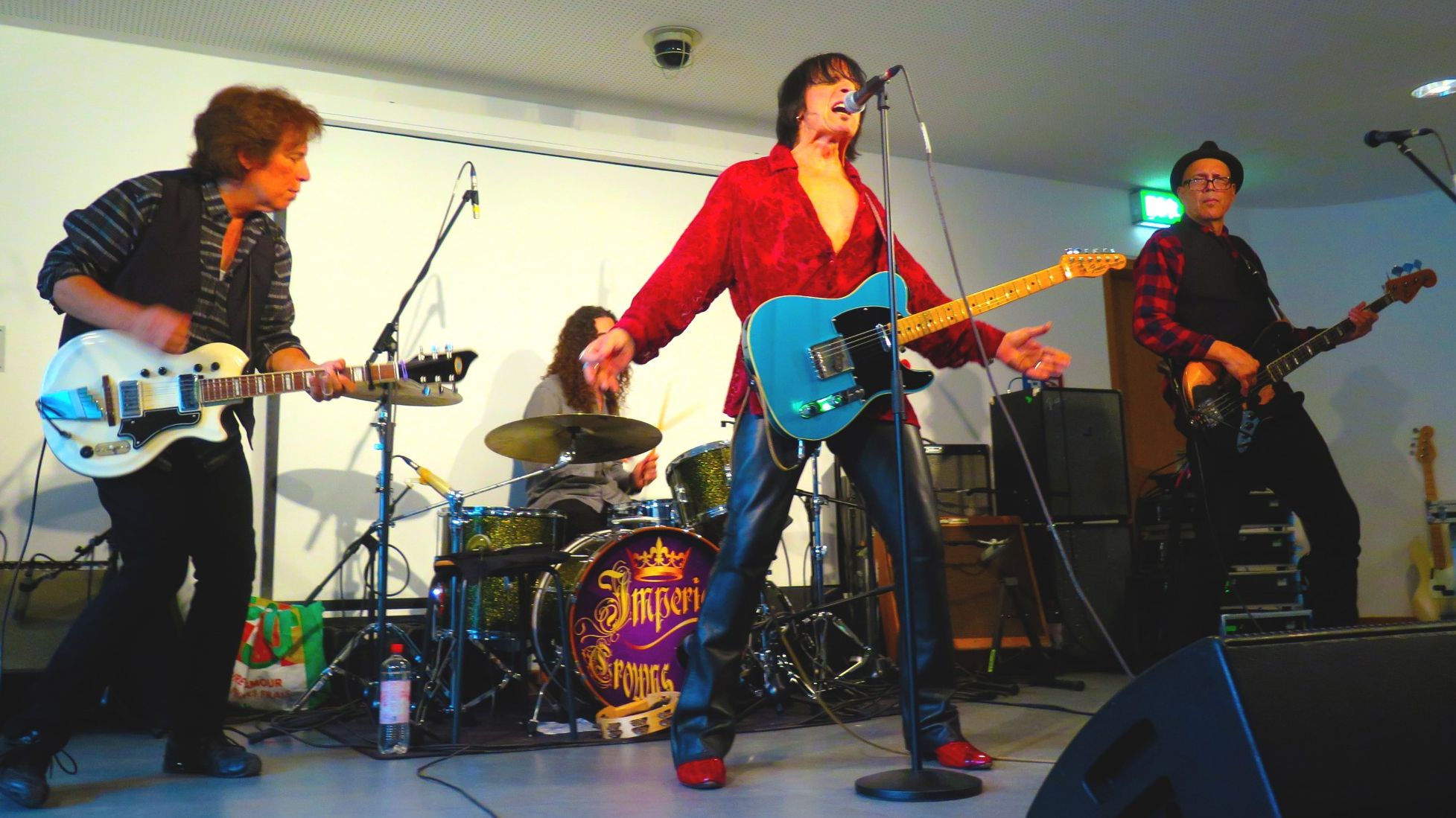 Das Quartett aus Los Angeles zauberte mit seinen ‚Knast-tiefen-Blues-Tönen‘ und deren mitreißender Kraft gute Laune hinter die schweren Gefängnismauern an der Molzbacherstraße. Die Imperial Crowns waren unterhaltsam, humorvoll und rocktechnisch einfach genial: ein musikalisch wie emotionales Erlebnis. Dabei musste ‚Blues-Prediger‘ Jimmie Wood (Vocals und Harmonica) unerwartet ohne die Gesangsstimme und Unterstützung seiner Tochter Rachel C. Wood (Vocals und Percussion), die kurzfristig ausgefallen war, auskommen und so die JVA-Bühne trotzdem rocken, was ihm mit seinen Mitstreitern JJ Holiday (Guitar und Vocals), James Carter (Bass und Vocals), und Ryan Dean (Drums und Percussion) wunderbar gelungen ist. Die Zuständige fürs Merchandising, Yara Schweiger, Tourmanager Martin Zehetner und Soundtechniker Lucas Klier („Theater hinter Gittern“) waren dabei eine große Unterstützung und sorgten dafür, dass alles harmonierte und bis in die musikalischen Details passte.