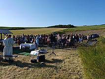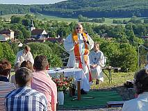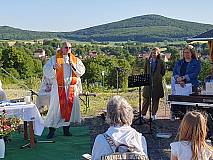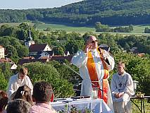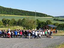 Großentaft. Einen herrlichen Blick auf Großentaft und das hessische Kegelspiel genossen die rund 130 Besucher des Gottesdienstes am Samstagabend. Die Kolpingsfamilie hatte unter dem Motto „Aufbruch - Komm und lass dich entflammen“ zur Heiligen Messe am Hutzelfeuerplatz oberhalb von Großentaft eingeladen.