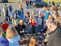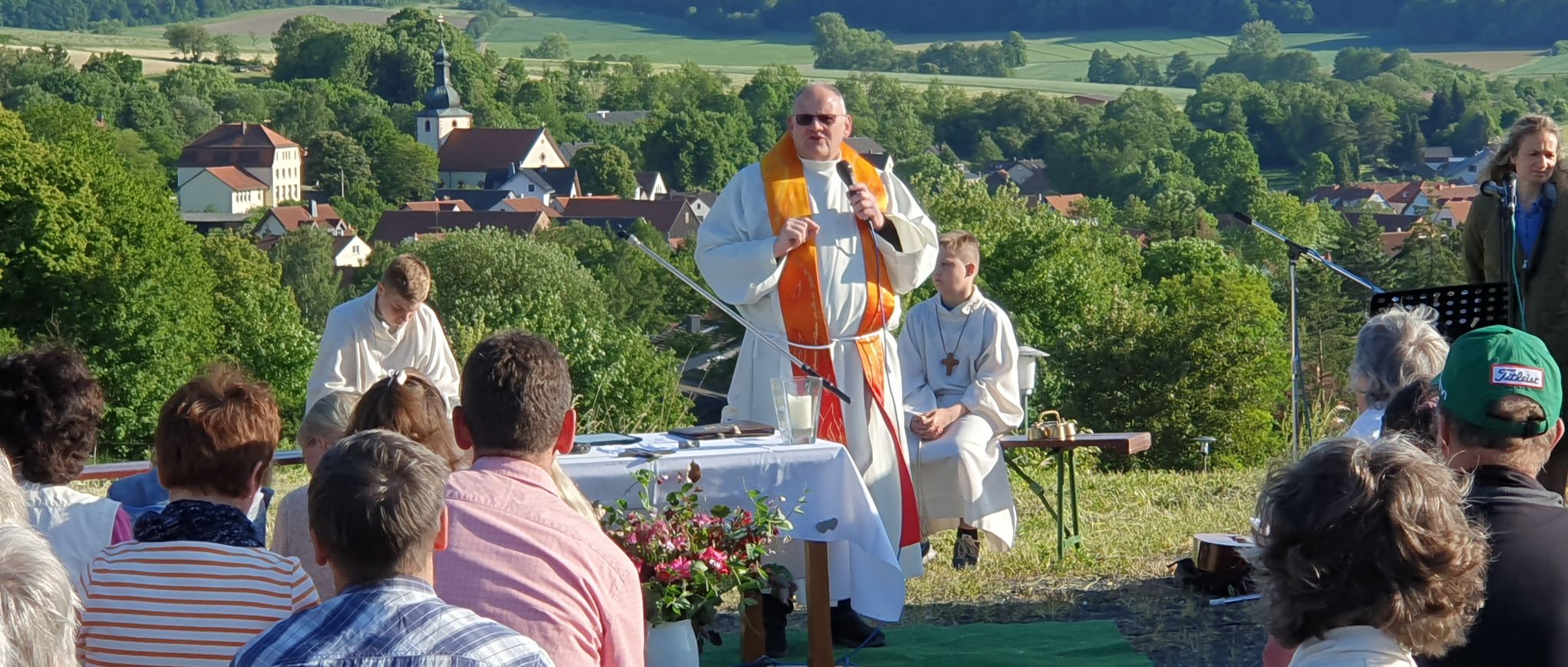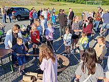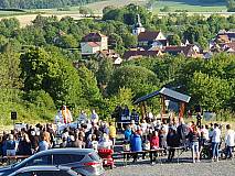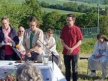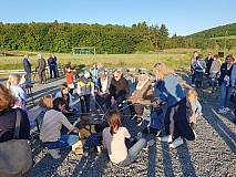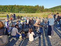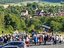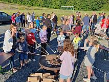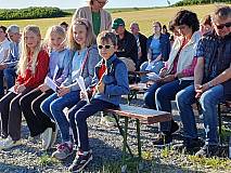 Die Gruppe „Herzenssache“ gestaltete den Gottesdienst musikalisch und stimmte vorher die Besucher mit Lobpreis und Anbetungsliedern ein. Im Anschluss gab es ein Lagerfeuer. So konnten die großen und kleinen Besucher bei Getränken, Stockbrot und Marshmallows den besonderen Ausblick auf Großentaft genießen.