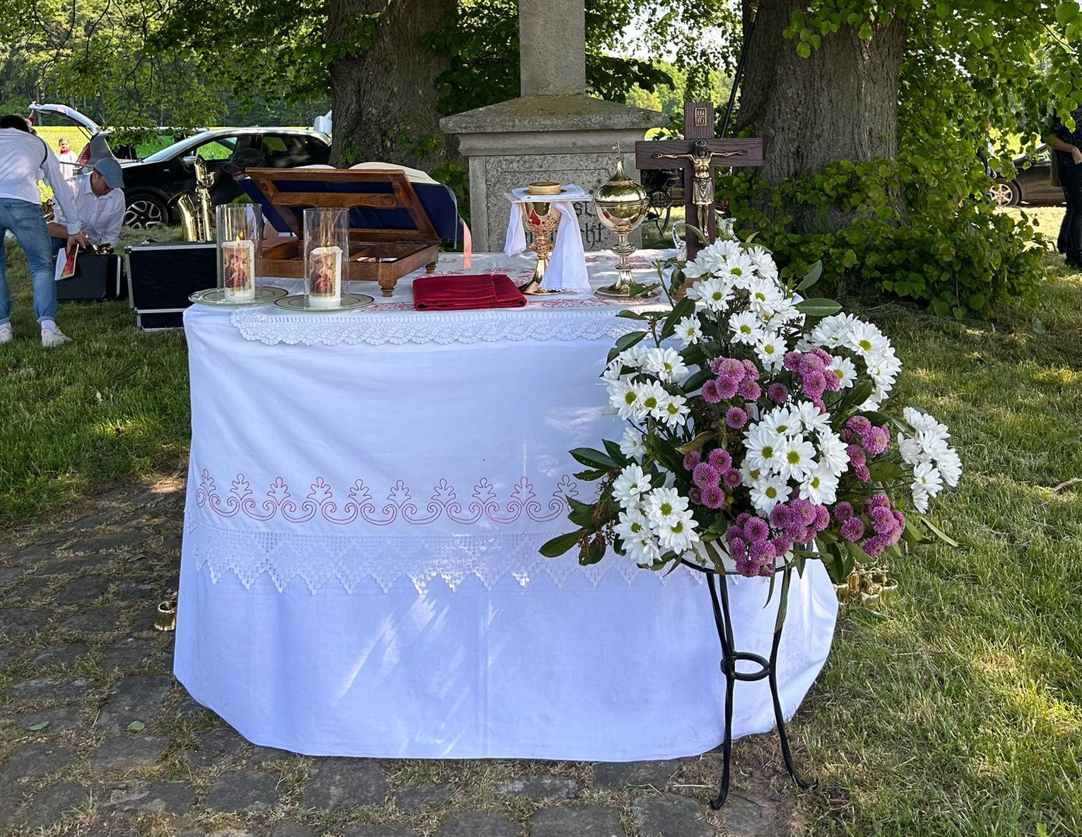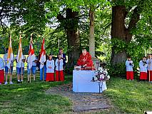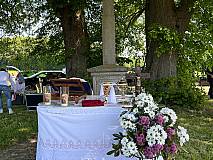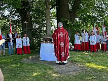 Jährlich am Pfingstmontag findet ein Open-Air-Gottesdienst der Pfarrei Arzell am Bildstock bei den „Drei Linden“ in der Gemarkung Dittlofrod zwischen den Orten Arzell, Körnbach und Dittlofrod statt. So auch in diesem Jahr am 29.05.2023. Die Gläubigen starteten mit einer „Sternenwallfahrt“ aus den drei Ortschaften mit Gebeten und Liedern sowie Fahnen, sodass sie nahezu zeitgleich aus drei Richtungen an der Baumgruppe ankamen. Mit fast 200 Männern, Frauen und Kindern feierte Pfarrer Winfried Vogel den Gottesdienst, der von der Bläsergruppe Dittlofrod musikalisch umrahmt wurde. Anschließend gab es vom Pfarrgemeinderat Bratwürstchen und Getränke. Alle Gläubigen konnten an diesem Vormittag bei herrlichem Sonnenschein den Heiligen Geist spüren und freuen sich sehr auf eine Wiederholung nächstes Pfingsten.
