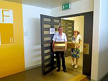 Ausserdem konnten die Familien neben dem Kirchenbesuch und Kaffee und Kuchen im Mehrzweckraum, auch noch einen Gefangenentransporter, der von der JVA Hünfeld bereitgestellt worden war, besichtigen, den Gefängnishund kennenlernen und erfuhren in der Sporthalle eindrucksvoll, wie Sicherheitseinsätze funktionieren. Am Ende konnten alle noch ein Foto vor einer alten Gefängnistür bei der Pforte machen und für Kinder und Jugendliche gab es als Andenken ein hessisches „Justiz-Frisbee“. Die Kinder, die so den Arbeitsplatz ihrer Papas und Mamas kennen lernen konnten, zeigten sich beeindruckt. Es ist für die Familien nicht nur höchst interessant aber auch sehr wertvoll zu sehen, wo und wie gearbeitet wird, so können gesellschaftliche Vorurteile und persönliche Ängste überwunden werden. Was in vielen anderen Berufen in Hessen eine Selbstverständlichkeit darstellt, ist im Gefängnis eben die Ausnahme.