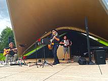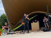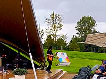 Das Himmelszelt bei der Landesgartenschau in Fulda von der Evangelischen Kirche war auch dieses Wochenende wieder gut besucht. Viele Menschen lieben es mit musikalischer Begleitung einen Moment zur Ruhe zu kommen. Der offene Kirchenraum mit Klängen von Divine Concern war so ein Moment am Sonntag Nachmittag, wo so mancher in der Sonne wieder neu Kraft tanken konnte. Der Gefängnisseelsorger und seine Mitstreiter gaben ihr Bestes bis am späten Nachmittag leider der Regen einsetzte. Die Bandmitglieder reagierten trotz des Regens mit einer lebendigen Zugabe, wobei der Sänger der Band im Regen tanzte und auf seiner Gitarre spielte, während das Publikum begeistert mitklatschte.