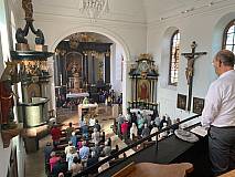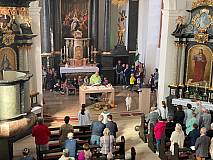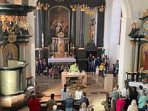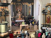 Zum Schluss hat jedes Kind einen gebastelten Gebetswürfel geschenkt bekommen. Pfarrer Ulrich Piesche hat diese in der Kirche gesegnet.