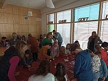 Im Anschluss haben wir gehört, wie wichtig es ist, dass wir uns alle gegenseitig helfen und miteinander teilen. Jesus hat uns gesagt, wir sollen jeden Tag zu Gott beten: „Unser tägliches Brot gibt uns heute“. Wenn wir Brot miteinander teilen, denken wir an Jesus.