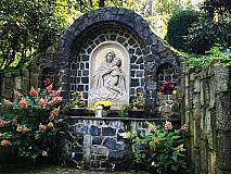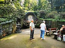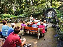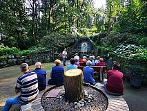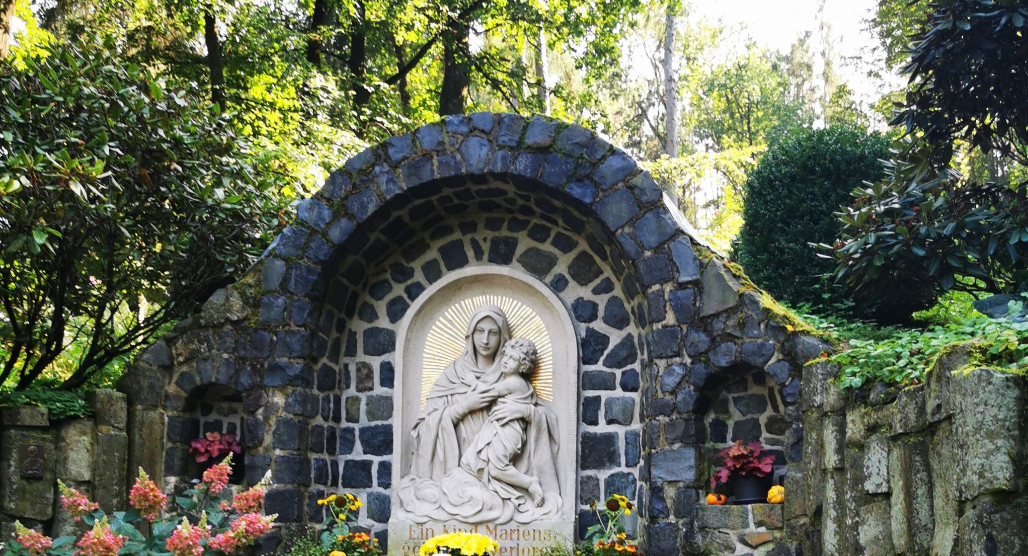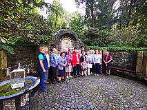 Am 13.09.23 fuhren wir Senioren nach Hünhan zur Mariengrotte. Dort wurden wir von H. Günter Pilz, dem Vorsitzenden des Förderkreises Mariengrotte Hünhan, erwartet. Er erzählte uns, wie die Grotte nach dem 2. Weltkrieg aus Dankbarkeit erbaut wurde und nach einer Renovierung und Erweiterung ab dem Jahr 2005 den heutigen Zustand fand. Wir hielten eine Marienandacht, zu der auch Pfr. Piesche noch rechtzeitig dazukam.