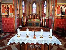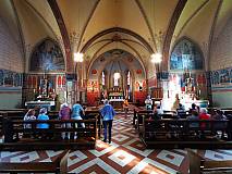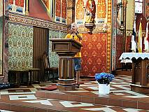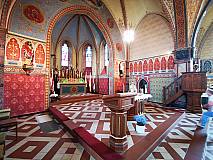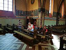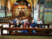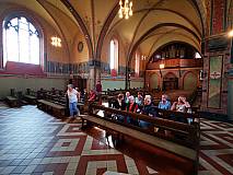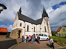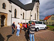 Danach besuchten wir die wunderschöne Kirche in Hünhan, die in neugotischem Stil erbaut ist. Herr Wolfgang Christmann gab uns einige Erläuterungen und zeigte uns, wo die alte Kapelle stand, die man mit in den neuen Bau der Kirche übernahm. Zum Schluss der Führung sangen wir noch das Lied „Ein Haus voll Glorie schauet“ und Pfr. Piesche gab uns den Segen.