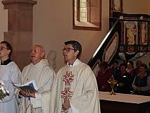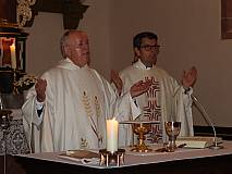Mit dem Festtag des Heiligen Wendelinus endete das Wallfahrtsjahr auf dem Gehilfersberg bei Rasdorf. Domkapitular und Caritasdirektor i.R. Bruno Heller, Erfurt/ Spahl, war in die Wallfahrtskirche zu den Heiligen 14 Nothelfern gekommen, um mit den Gläubigen die Eucharistie zu feiern. Dechant Markus Blümel begrüßte die zum Abschlussgottesdienst zahlreich erschienen Gläubigen und den Domkapitular i.R. und zelebrierte mit ihm den Abschlussgottesdienst des diesjährigen Wallfahrtsjahres.