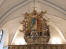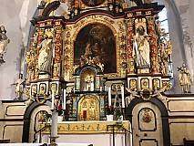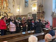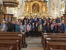 Frühmorgens ist der Kirchenchor St. Matthäus Steinbach zu seinem Ausflug (bzw. kleine Pilgerreise) nach Kohlhagen, das zum Erzbistum Paderborn gehört und abgelegen, aber sehr idyllisch im Rothaargebirge liegt, aufgebrochen. Nach ca. 3-stündiger Busfahrt erreichten wir den Wallfahrtsort, um mit den dortigen Gläubigen den Gottesdienst um 10.00 Uhr chormusikalisch mitzugestalten. Der imposante Kirchenbau wurde Anfang des 17. Jahrhunderts im nachgotischen Stil erbaut. Der Hochaltar beeindruckt mit seinen vielen Darstellungen aus dem Leben der heiligen Mutter Maria und den wichtigsten Figuren der Heiligen aus dem christlichen Leben, vor allem die 12 Apostel und die 4 Evangelisten, die von dem Attendorner Künstler Peter Sasse geschaffen wurden. Besonders auch die barocke königliche Strahlenmadonna, die im Mittelschiff der Kirche herabhängt. Der linke Kreuzaltar enthält in der Mittelkalotte eine kleine Holzfigur, die die heilige Maria mit ihrem verstorbenen Sohn auf den Knien zeigt. Pater Siegfried Modenbach erzählte uns in eindrucksvoller Weise die Legende, wie dieser Wallfahrtsort mit dieser gefundenen kleinen Marienfigur entstanden ist. Nach einer Führung in der Wallfahrtskirche und im Geistlichen Zentrum, das im Juli 2021 mit einem Gottesdienst feierlich eröffnet wurde, schloss sich ein gemeinsames Mittagessen im großen Saal an.
