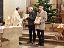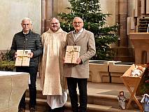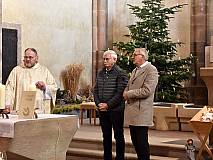 Die langjährigen Pfarrgemeinderatsmitglieder Theo Lenz und Winfried Möller wurden im Festgottesdienst am 2. Weihnachtsfeiertag von Pfarrer Ulrich Piesche im Namen von Pfarrer Markus Blümel, dem Pfarrgemeinderat Rasdorf, Grüsselbach, Setzelbach und dem Verwaltungsrat der Pfarrei Rasdorf verabschiedet. Beide standen bei der Neuwahl des Pfarrgemeinderates im November 2023 nicht mehr zur Verfügung. Winfried Möller war seit 1987 und Theo Lenz seit 1999 Mitglied. Zudem war Winfried Möller langjähriger Sprecher des Pfarrgemeinderates. Beide hätten nachhaltige wertvolle kirchliche Arbeit geleistet. Ein zurzeit sichtbares Beispiel sei der Rasdorfer Adventsweg. Er hoffe, dass beide auch zukünftig für Projekte und Aufgaben zur Verfügung stünden, auch wenn sie keine offizielle Funktion mehr hätten, so Pfarrer Ulrich Piesche. Er überreichte eine Urkunde und ein Präsent. Ohne die Arbeit der Ehrenamtlichen, die sich sowohl im Pfarrgemeinderat, dem Verwaltungsrat oder bei Projekten einbringen würden, sei kirchliches Leben nicht möglich. Besonders bei dem zu erwartenden Priestermangel seien die Kirchengemeinden gefordert, das kirchliche Leben zu tragen und zu fördern, so die beiden scheidenden Mitglieder.