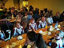 Das Krippenspiel der Messdiener sowie die Gardetänze der „Fieser Fünkchen“ und der „Sternschnuppen“ begeisterte die Gäste. Bei Kaffee und Kuchen, einer Geschichte über die Heiligen drei Könige, dem Mitmachspiel „Mein Hut der hat 3 Ecken“ und Liedern, die von Lea Wolf am Cello und Martina Wolf an der Gitarre begleitet wurden, hatten alle Anwesenden einen vergnüglichen Nachmittag.