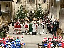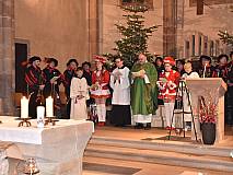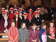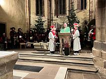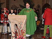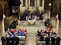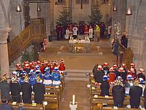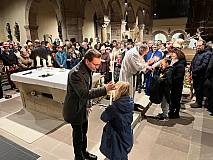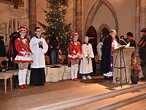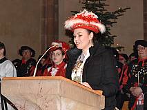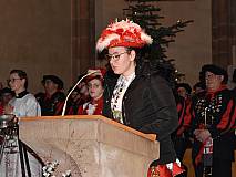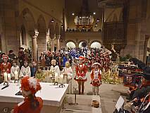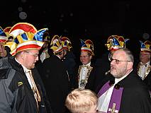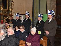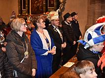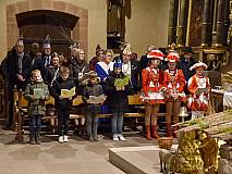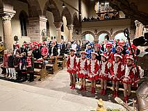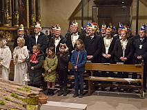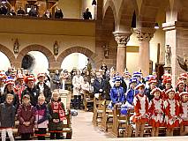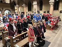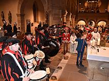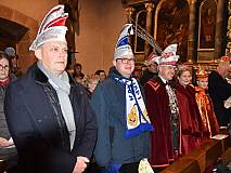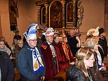 Ein buntes Bild boten die Tanzgarden, Elferräte aus Großentaft, Grüsselbach und Rasdorf, der Trommel- und Fanfarenzug der Freiwilligen Feuerwehr Rasdorf sowie die verkleideten Kinder beim Familien-Fastnachtsgottesdienst in der Rasdorfer Stiftskirche. Mit Ihrer Lieblichkeit Prinzessin Andrea I und Seiner Hoheit Prinz Frank I aus Grüsselbach (Andrea und Frank Gollbach) sowie Ihrer Lieblichkeit Prinzessin Jasmin und Seine Hoheit Prinz Dominik XXXII aus Großentaft (Jasmin und Dominik Schellenberger) waren gleich zwei Prinzenpaare zum Gottesdienst gekommen, dem Pfarrer Ulrich Piesche vorstand und der vom Familiengottesdienstteam vorbereitet worden war. Pfarrer Ulrich Piesche begrüßte zu „Aschermittwoch“, um dann festzustellen, dass ja Fastnacht ist und wechselte das liturgische Gewand nach grün. Anschließend reimte er mit „Liebe Christen, liebe Leute, Karneval ist wieder heute. Christen dürfen lustig sein und beim Fasten auch da sein. Heute schließ ich mit Helau, Halleluja ganz genau!“ Während Kerstin Bock Textsequenzen zur Einstimmung auf den Gottesdienst vorlas, zeigten die Erstkommunionkinder dazu passende Gebärden. Nach dem Kyrie, gebetet von den Grüsselbacher Prinzenpaar-Töchtern, animierte Edith Wiegand, als Sportlerin verkleidet, das Halleluja in Bewegung zu singen. Die Orgel spielte Philipp Geistlinger. Im Tagesgebet (Vanessa Fladung) wurde deutlich, dass Gott hinter jede Maske schaut und den Menschen sieht, wie er wirklich ist. Die Teeniegarde aus Grüsselbach tanzte nach dem Evangelium (Pfarrer Ulrich Piesche) und „Die Geschichte vom Gaugler“ gelesen von Christina Weber einen Gardetanz. Fastnachtliche Texte und Musik steuerte die Grüsselbacher Hofburgspatzen (Volker Walk, Frank Gollbach, Bernd Heller, Raimond Walk) und der Trommel- und Fanfarenzug (Leitung Michael Schmitt) bei.