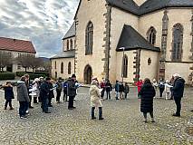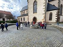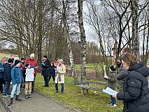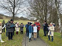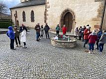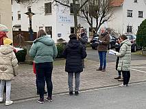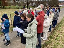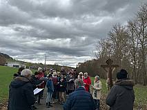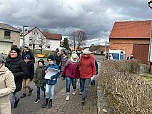 Bei einer eineinhalbstündigen Wanderung wurden am 2. Fastensonntag in Rasdorf gemeinsam die Kreuzwegstationen aus einem eigens dafür angefertigten Gebetsheft betrachtet. Der „Kreuzweg in der Natur“ führte über die Braugasse, Rinnweg, Heileweg und Vockenbach bis zum Tretbecken. Von dort ging es über Anger zurück zur Stiftskirche. Meditativ wurde so der Leidensweg Jesu in 15 Stationen, die letztere beinhaltete die Auferstehung, betrachtet.
