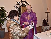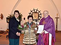 Foto 008: Pfarrer Peter Hannappel (rechts) zeichnete gemeinsam mit Beate Reinhardt (links) Frau Christa Reinhardt (Mitte) in der Kirche in Wölf mit der Elisabeth-Medaille des Bistums Fulda aus.